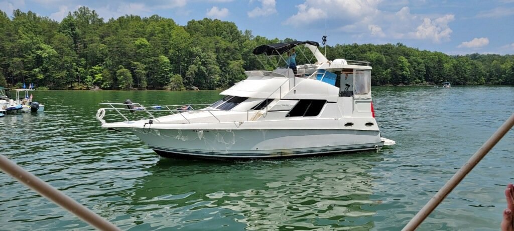 This Silverton 372 is currently undergoing a mechanical overhaul. Two staterooms with full beds and attached heads, a gorgeous and sizeable salon, you can comfortably sleep four to six people on the vessel.